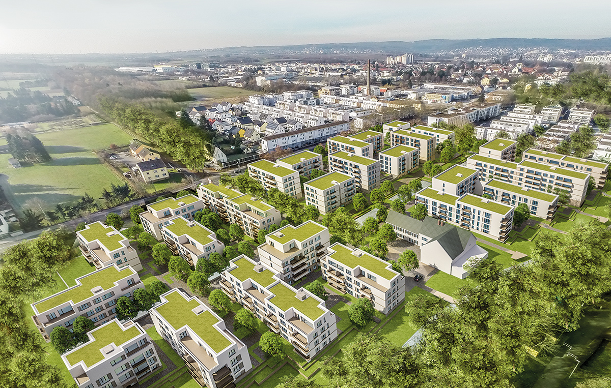 - Baufeld 3: 9 Mehrfamilienhäuser mit insgesamt 110 Wohneinheiten, ebenfalls mit einer gemeinschaftlichen Tiefgarage